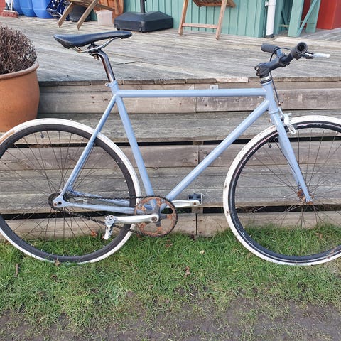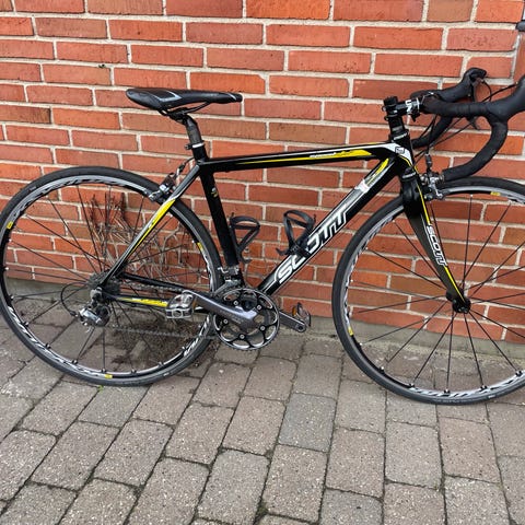 Super let Scott racer med 52 cm aluminiumsstel. Cyklen har fladt styr og Shimano Sora gear (3*8). Alt virker men vil have godt af lidt service. Vil tro dennpasser højde 170-180.