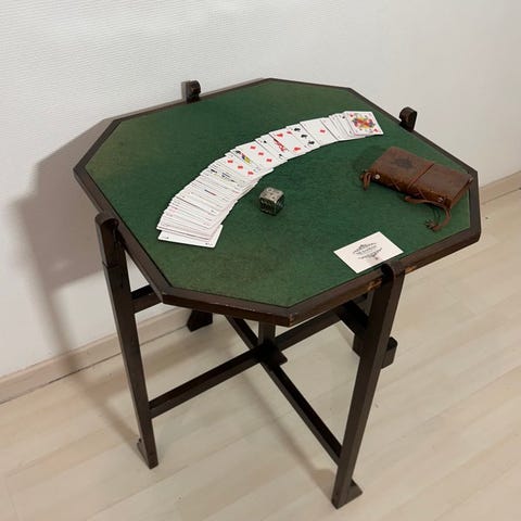 Maghoni spillebord. Kan bruges på forskellige måder. Desuden brugt som forlænges til spisebord.