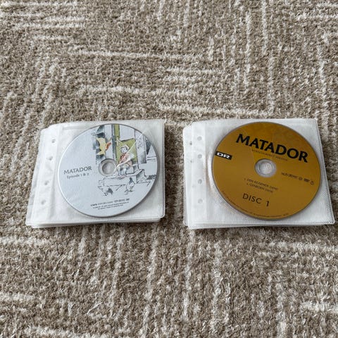 DR Matador-kollektionen dvd-boks. Samling med tv-serien Matador udgivet af DR i en samlet dvd-boks. Boksen indeholder flere dvd-diske med afsnittene samt trykt materiale med illustrationer og tekst om serien. Velegnet til afspilning på dvd-afspillere, der understøtter standard dvd-medier. Matador Kollektionen 1929-1947, instruktør Erik Balling, DVD