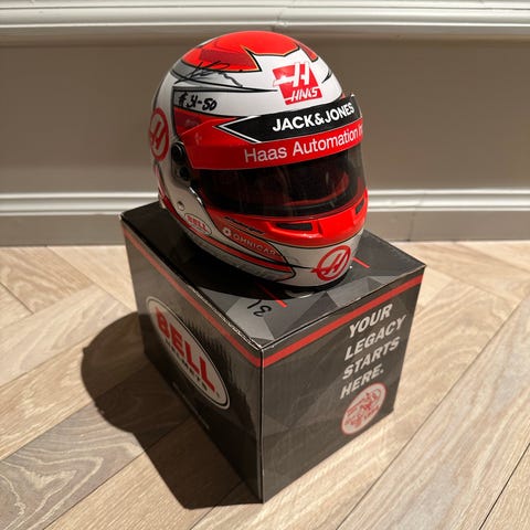 Hjelmen er del af en limited edition kollektion fra 2020 sæsonen hvor Kevin Magnussen signerede 50 eksemplarer.