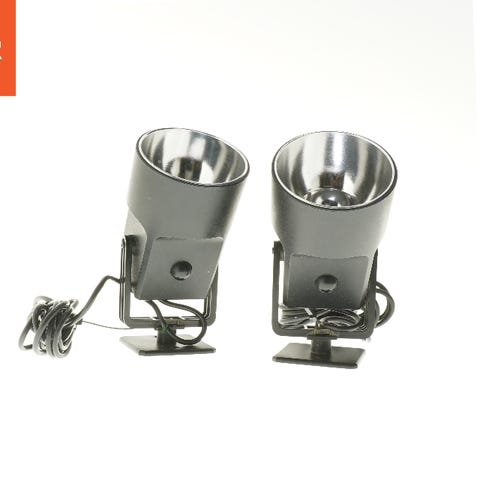 Begge spots er godt brugt med flot patina. Stik skal monteres. Begge spots har fungerende pærer i.