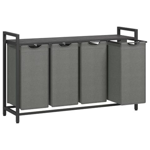 Hold styr på vasketøjet med denne praktiske vasketøjssorterer med 3 separate rum. Hver pose rummer 40 l, så du nemt kan sortere lyst og mørkt fra hinanden og efter tøjtype. De to åbne hylder giver ekstra plads til vaskemiddel, kurve og toiletartikler, mens det lamel-design sikrer luftcirkulation, så vasketøjet holdes friskt.