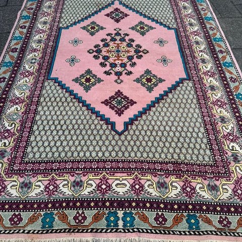 *Før ankomst til vores lager, renset hos et vasketeri specialiseret i håndknyttede tæpper, herefter ikke længere brugt.