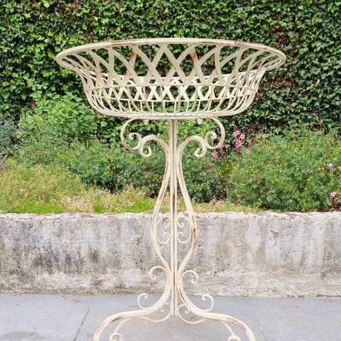 Anslået periode: 2023, materiale: metal (jern); blomsterpotte i form af cykel, hvid med rustpletter. Klik på den blå "gå til varen" knap, for at købe eller byde på denne vare. Den samlede pris vil blive vist inden du afgiver dit bud.