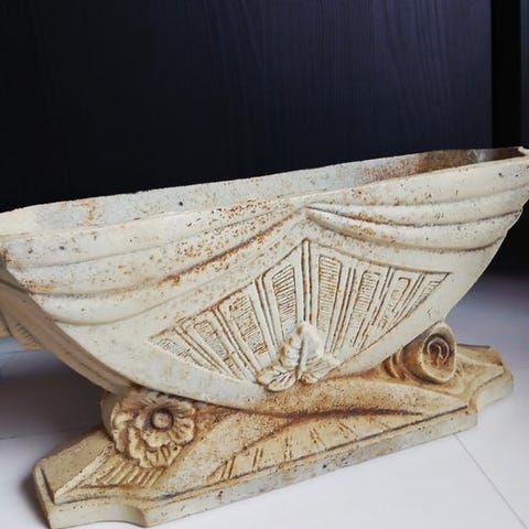 Jern-vægdekoration med blomsterkasse; tung og solid, mål ca. 50 cm høj, 47 cm bred og 19 cm dyb. Klik på den blå "gå til varen" knap, for at købe eller byde på denne vare. Den samlede pris vil blive vist inden du afgiver dit bud.