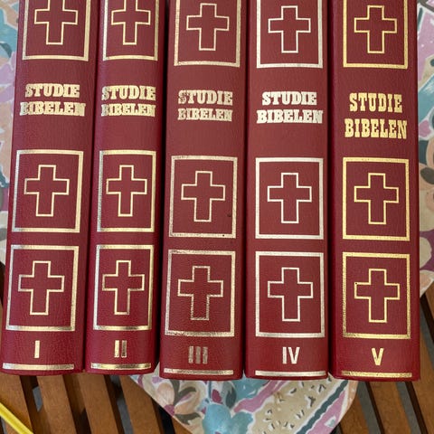 Studie Bibelen. 5 bind, Den norske Studiebibelen af Thoralf Gilbrant m.fl. For den der ikke kan græsk,, det er , det bedste opslagsværk til at komme i dybden med Det Nye Testamente i. Det ny testamente står først på græsk med græske bogstaver, linjen under står det samme bare med latinske bogstaver, så med lydtale, og til sidst på et letforståeligt norsk.