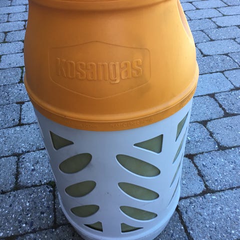 Sælger 1 stk tom Kosan Gasflaske med en kapacitet på 11 kg. Farve gul, fremstillet i stål.