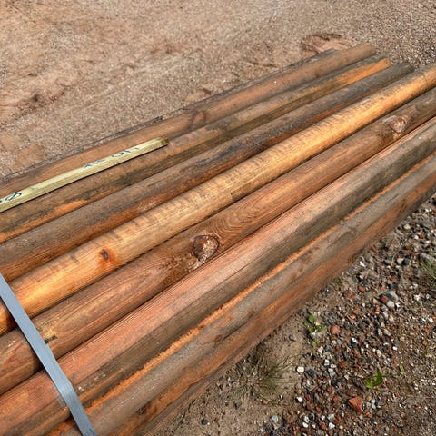 Raftehegn med stopler og rafter i fyrretræ. Kun 4 år gammelt. Samt fyrretræ terassebrædder se foto. Alt skal afhentes for at det gives væk