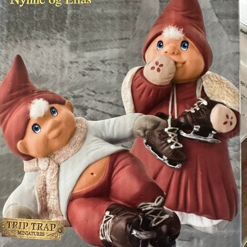 Årsnissen med bamse fra 2003 og nisse på gynge også fra 2003.
