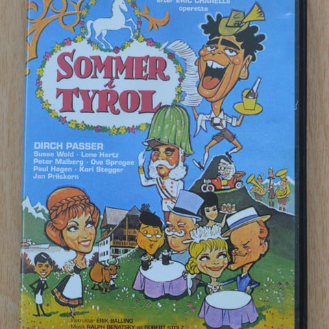 Sommer i Tyrol DVD film. Dansk komediefilm udgivet på DVD i standard plastikcover. Forsiden viser tegnet motiv med skuespillere og titel. Velegnet til afspilning på DVD-afspillere, der understøtter DVD-formatet.