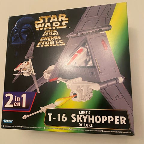 Modellen forestiller et TIE Bomber-rumskib fra Star Wars-universet. Sættet indeholder selve rumskibet med detaljeret skrog og vinger samt tilhørende dele, som ses på billederne. Der medfølger original æske og brugsvejledning med illustrationer af funktioner og samling. Egnet som legetøj eller som samlerobjekt for Star Wars-interesserede.
