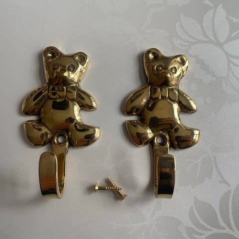 Store smukke bamse messing knager i flot stand H11,5cm x B8cm samlet mp 500kr afhentes i 8570 Trustrup eller sendes 45kr (Har 2 sæt a 2 stk)