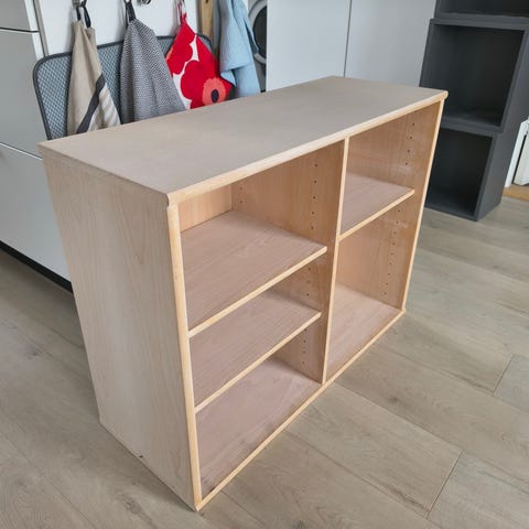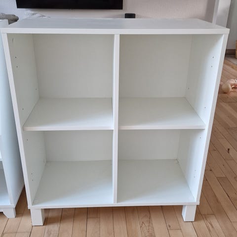 Reolmodul SKALS 4 rum vild mørk eg Aftagelige ben. Kan stables eller vægmonteres. B71 x H71/81 x D35cm står opbevaret så har ikke billeder af mit, men den står som nyt. Befinder sig i Gundslev så det hentes efter aftale.