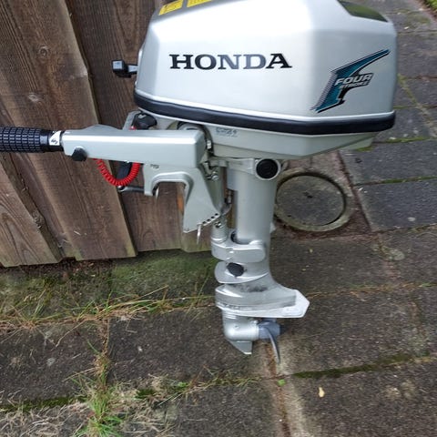 Honda påhængsmotor. Benzindrevet motor til montering på bådens hæk. Motoren har integreret brændstoftank og manøvrehåndtag med gas- og gearfunktion. Egnet som fremdriftsmotor eller hjælpemotor til mindre både, joller eller som reserve-/sidemotor på større både.