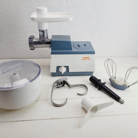 Teddy Varimixer er legendarisk blandt entusiaster og professionelle køkkener i hele landet. Denne model er har fået et serviceeftersyn og nyt originalt gearfedt. Den kører perfekt og har kun mindre misfarvninger i den sølvgrå lak, som vist på billedet.