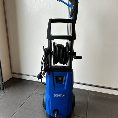Kompakt model egnet til rengøring af fx terrasser, indkørsel, havemøbler og køretøjer. Enheden har integreret slange og pistolhåndtag, som ses på billederne.
