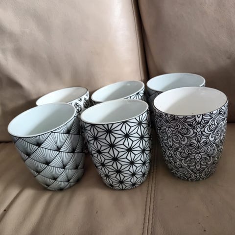Porcelæn, Krus, Openmind, 4 krus i flotte farver uden skår .