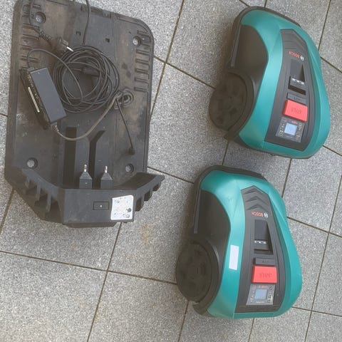 Bosch indigo opbevaringskasse / garage til robotplæneklipper i plast. Kassen er udført i hård plast med låg. Designet til at beskytte robotplæneklipper mod vind og vejr