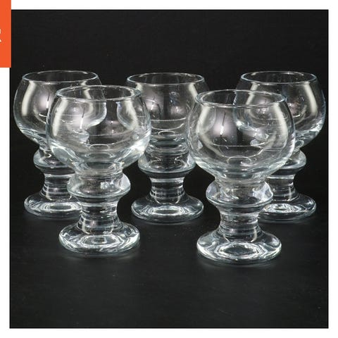 skibsglas fra holmegaard Dette er et sæt bestående af 6 glas. Glassene er 9 cm i højden og har en solid rund fod. De er gennemsigtige, lavet af glas og har en enkel og klassisk form, der er velegnet til forskellige drikkevarer.