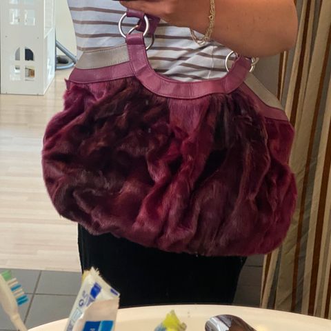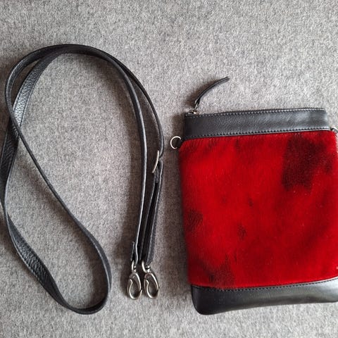 Foret sort lædertaske med sælskind fra Royal Greenland.