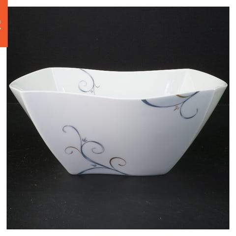 Karaffel med en diameter på 20 cm. Fyrklöveren Victoria kombinerer bølgende former, diskrete farver og smukke gulddetaljer. Det sarte, snoede mønster i blå, grå og guld er designet af Anne Rooslien som en hyldest til kærligheden. Perfekt til en luksuriøs borddækning, igen og igen! En fremragende bryllupsgave eller housewarming-gave.