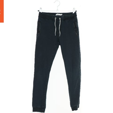 Et par mørkeblå sweatpants med elastisk linning og snøre foran. Bukserne har en enkel og komfortabel stil med rib ved anklerne for en god pasform.