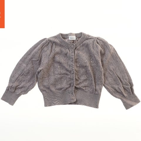 En orange cardigan fra mærket Name It med lange ærmer og knapper foran. Den er i en let, gennemsigtig stofkvalitet.