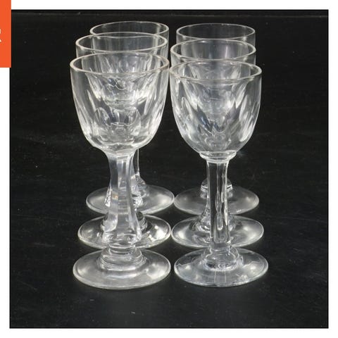 Sæt bestående af syv klare drikkeglas med en størrelse på 8x4 cm. Glassene har en klassisk form med en solid base, der giver stabilitet. Velegnet til servering af små portioner af drikkevarer såsom portvin, shots eller små aperitiffer. Glassene har et elegant og tidløst design.