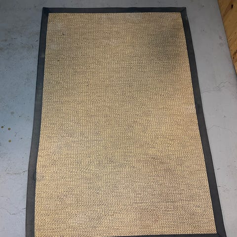 sisal tæppe, natur tæppe, vævet tæppe, beige tæppe, naturfiber tæppe, gulvtæppe, fladvævet tæppe, nordisk indretning, minimalistisk, tæppe 134x200, løber, sommerhus stil, boligindretning, brugt tæppe