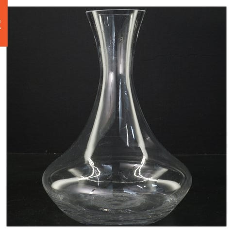Gennemsigtig glas karaffel med brunt farvetone og klart glashåndtag. Fremstår med smal hals og bred base, design egnet til at servere og dekantere drikkevarer.