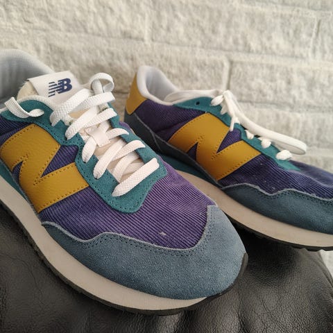 New Balance 550 sneakers i størrelse 45,5 Modellen er en lav sneaker med overdel i primært hvidt materiale med bordeaux og turkis detaljer.