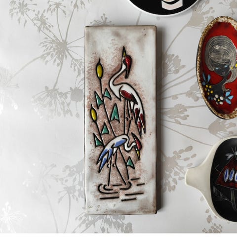 vintage keramikrelief fra det danske værksted Knabstrup Keramik Bornholm, der forestiller en hærfugl.