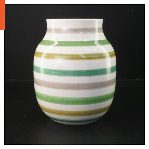 Keramikvase med indgraveringer fra Kahler, designet med en cylindrisk form. Perfekt til blomsterarrangementer eller som dekoration. Størrelsen er Ø 10 cm og længde 17 cm. Den har tekst indgraveret på ydersiden og en glat indvendig finish.