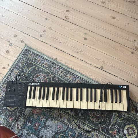 Novation Launchkey Mini MIDI-keyboard med 25 tangenter i sort. Kompakt controller med klaviatur, pads og kontrolknapper egnet til musikproduktion og live-brug sammen med computer eller tablet via MIDI/USB-tilslutning.