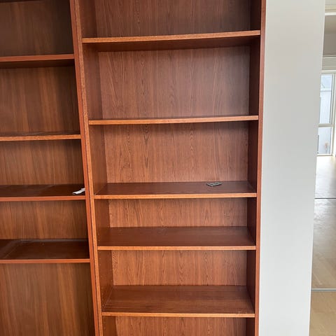 2 Billy reoler. En smal og en bred. Der er 7 hylder på den brede, den ene er fastsiddende. Den smalle er med 5 hylder.