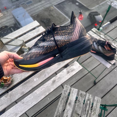 Sælger et par Adidas Prime X 3 løbesko i størrelse 47 1/3. De er brugt, men i god stand og har kun været brugt på få løbeture. Masser af liv tilbage i sålen. Afhentning i Greve eller kan sendes mod betaling. Pris: 700 kr.