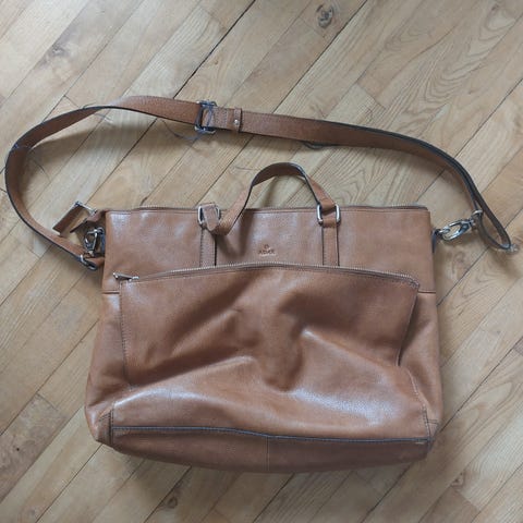 Tasken har to hanke og en aftagelig skulderrem, som kan justeres i længden. Tasken lukkes i toppen med en lynlås og på fronten er der en stor lynlåslomme. Indeni er der god plads, to rum adskilt af en smal lynlåslomme. I det ene rum er der en polstret lomme med velcrolukning til din bærbare og/eller tablet. I det andet rum er der en stor lynlåslomme med små lommer til kuglepenne mv. I Sasha får du en super jobtaske i slidstærkt læder i kalveskind.