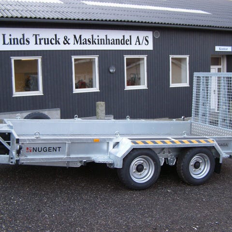 Nugent Maskintrailer 2700/2000 kg. Med rampe. Har fået nye bremser og ny knott påløbsbremse m næsehjul komp. Bunden er fin men lidt buler i siden af ladet alt virker og er synet sidst 9/10-2024