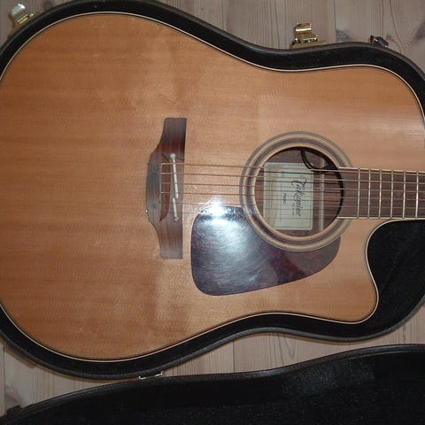 Den har Takamines TK-40D pickup og helt nye D’Addario XS (.12) strenge.