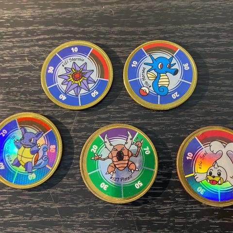 This 1999 Hasbro Pokemon Battling Gold Coin Game Nintendo Charizard #06 is a rare find for any Pokemon collector. The gold coin features the iconic Charizard character from the popular Pokemon franchise and is a must-have for any fan. The game was manufactured in 1999 and is part of the Cartoon & TV Character theme. It is a great addition to any collection and is sure to impress. Perfect obscure Pokemon item to add to your collection!