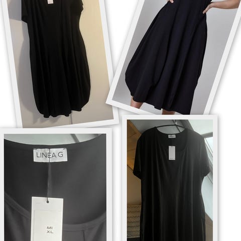 Flotte klassiske bukser fra Linea G (Grundahl) - Ivan Grundahls niece. Modellen hedder JUNKO - de er sorte og det er en str 44. De måler ca 2 x 50 cm i taljen UDEN at strække i elastikken. Kan bruges både siddende oppe i taljen, men også trukket lidt ned på hoften, da der er lidt elastik ude i hver side af linningen (se fotos). De har sidelommer (ses på foto) og lukkes med lynlås og knap. Buksen smaller en smule til forneden. Materialet er jersey af økologisk bomuld med lidt elastan - se foto. Bukserne er helt nye og ubrugte og stadig med papmærke med pris - sælges kun fordi de desværre er købt for store. Nypris 1400 kr. Sælges for 600 kr.
