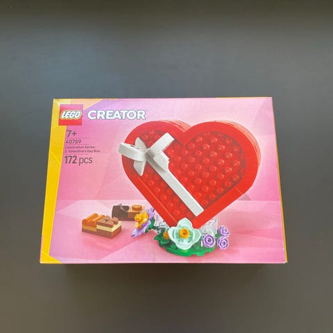 LEGO byggesæt formet som et hjerte i rød farve. Sættet indeholder 92 LEGO klodser, som kan samles til et tredimensionelt hjerte. Egnet til kreativ byggeleg, dekoration eller som lille gaveidé til LEGO-interesserede i forskellige aldre.