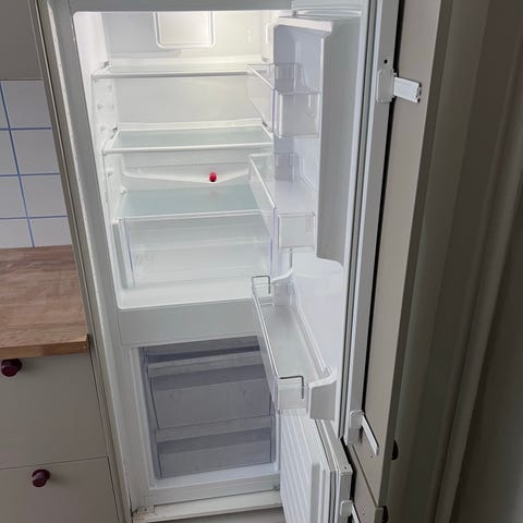 Et køle- og fryse-indbygningsskab fra IKEA, med køl og frys