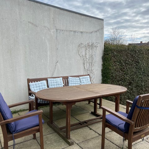 Sættet er brugt, men i fin stand. Har altid stået inde om vinteren.