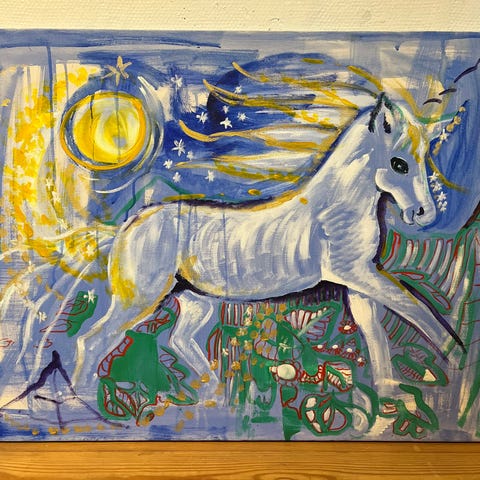 Inge Ellegaard maleri, 120x180 cm. spændes på blindramme ved køb og svæveramme kan tilkøbes.