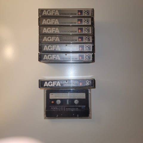 Brugte TDK SA90 og D90 kassettebånd sæt. Blandede lydkassetter i standard kompaktkassette-format, velegnet til optagelse og afspilning på båndoptagere og kassetteafspillere. Flere TDK SA90 high bias/Type II bånd samt TDK D90 normal bias/Type I bånd ses på billedet. Egnet til musik, taleoptagelser eller arkivering på analogt medie.