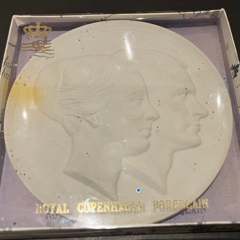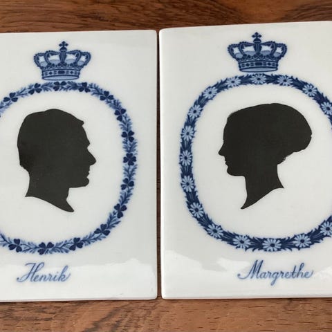 Porcelæn, Platte, Royal copenhagen, 1980 Royal Copenhagen Platte, Silhuet af Dronning Ingrid og Dronning Margrethe