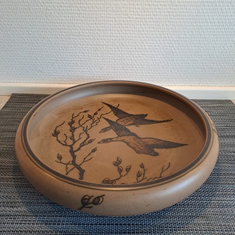skål, Hjort, Bornholm, Keramikskål, Hjort Bornholm, brun med jagtmotiver