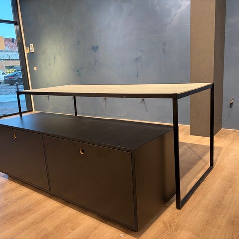 Rektangulært bord sæt med lys bordplade og sort metalstel