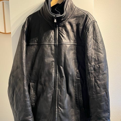 Lidt slidt på ærmet, som set på billedet.